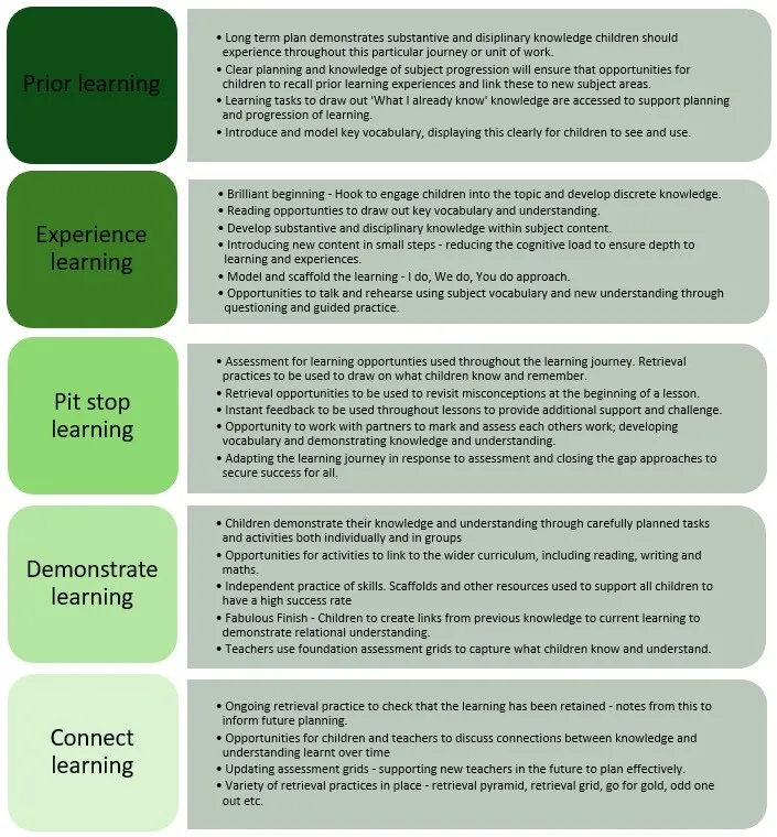 To ensure the defined precise knowledge and skills are coherently and sequentially taught within each subject and year group, we have designed learning journeys for each of the core and foundation subjects which teachers use as the basis for their planning