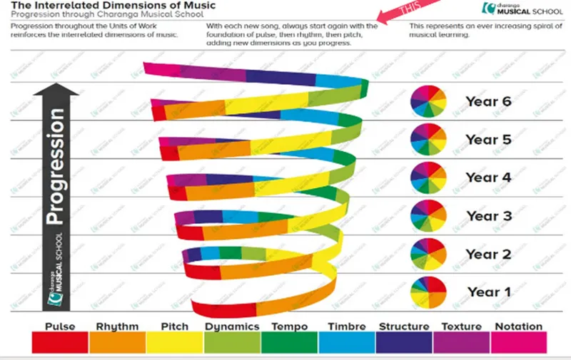 Implementation: Our music curriculum follows ‘The interrelated Dimensions of Music’ progression. Our teaching is based around the repetition of key curricular content with overtime, the gradual introduction of new ideas, methods and concepts.